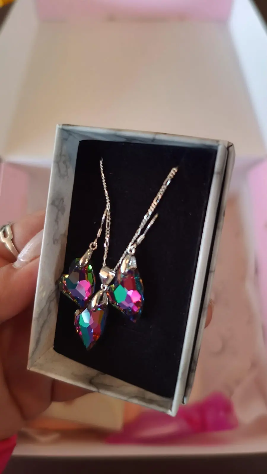 El corazón del regalo es el conjunto de plata italiana 925 con cristales Swarovski, un detalle que ilumina y celebra a la persona que lo reciba. Acompaña a este set una pulsera de plata italiana, delicada y eterna, pensada para ser usada con orgullo y emoción.