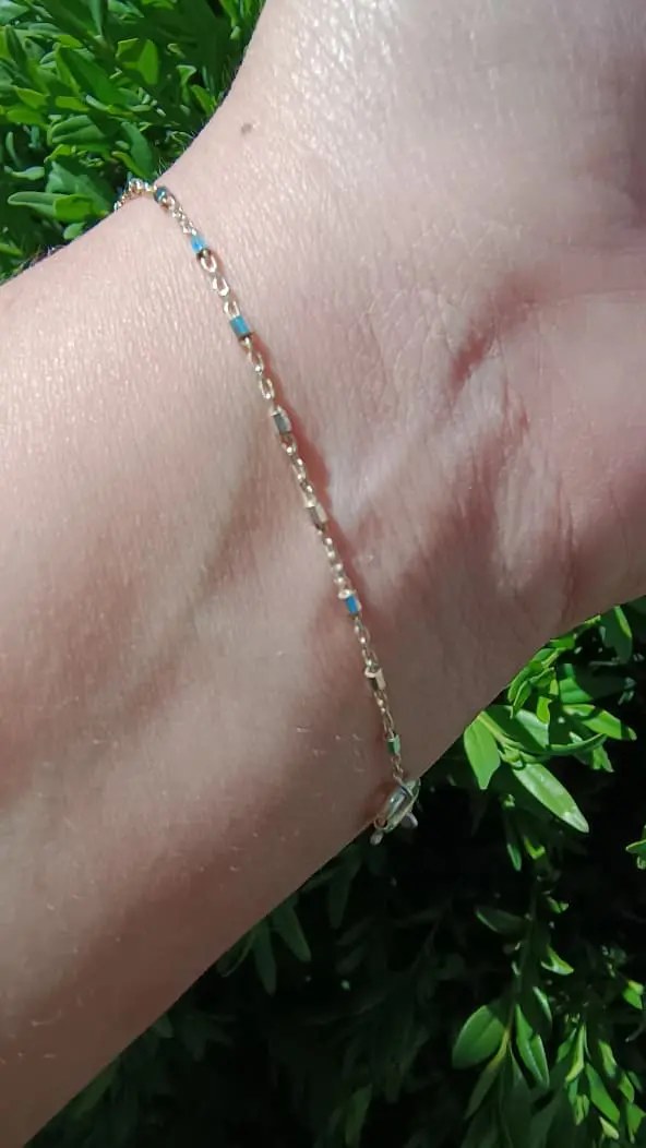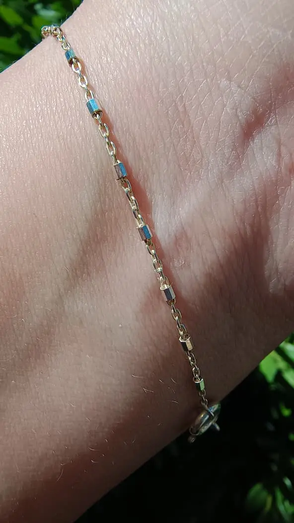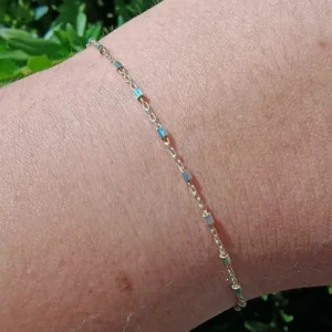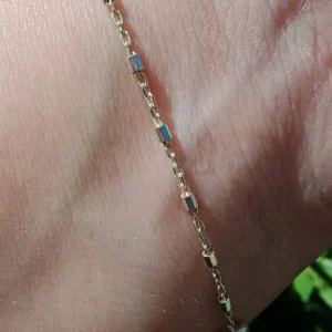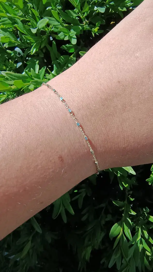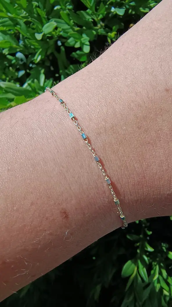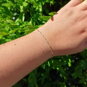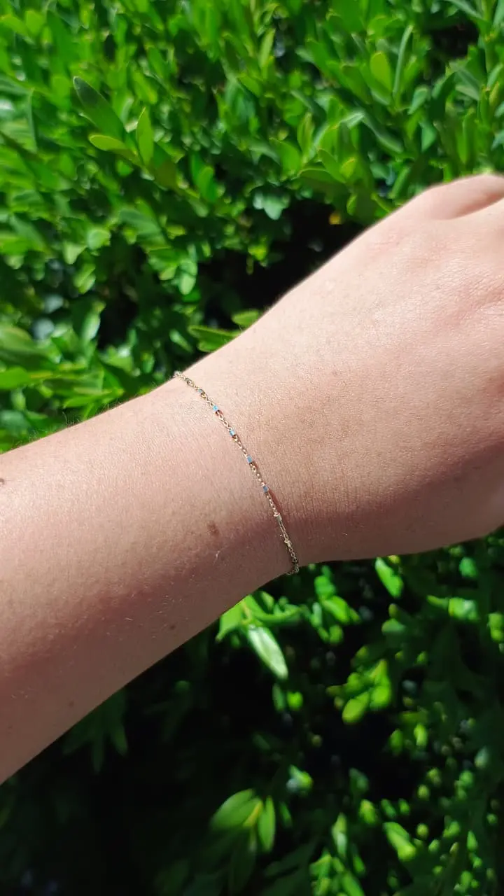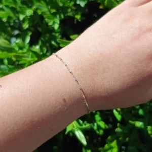 Su acabado reluciente y su estructura delicada la convierten en una joya perfecta para usar sola o en combinación con otras pulseras.